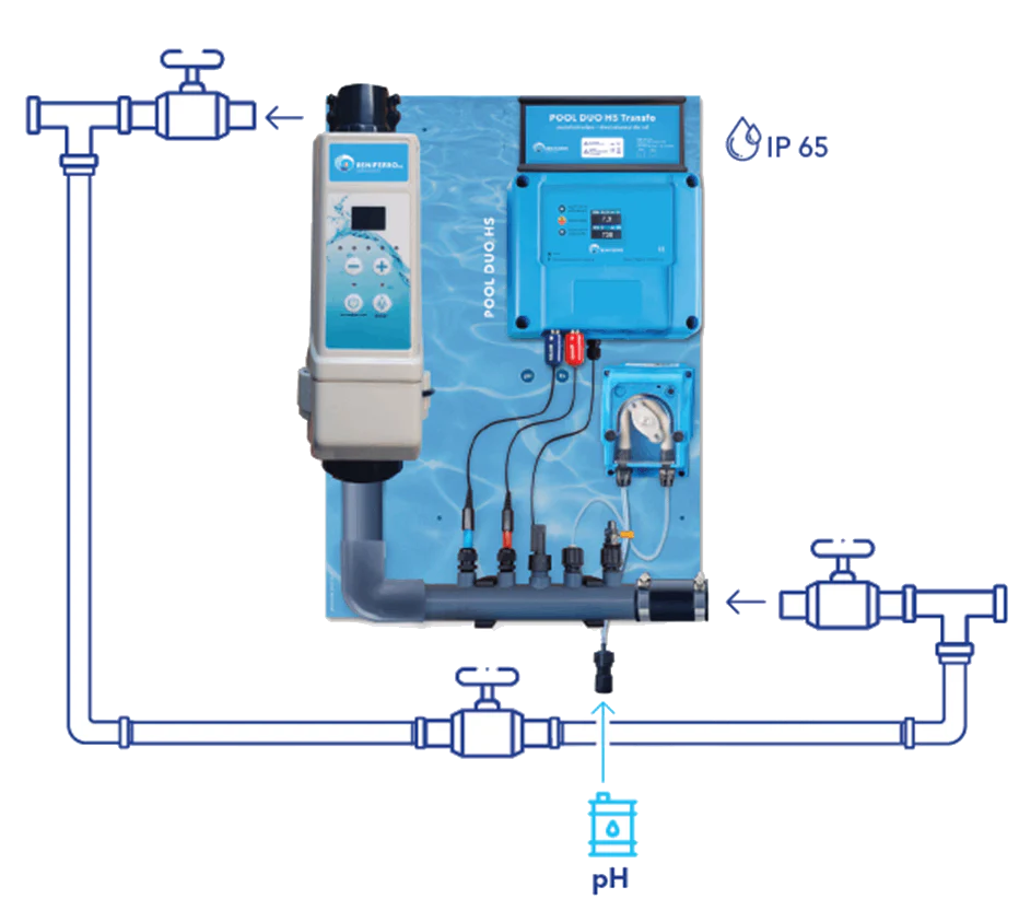 Beide Geräte funktionieren auf die gleiche Weise: Sie überwachen kontinuierlich den pH-Wert und den Redox (Chlor). Sobald einer von beiden angepasst werden muss, beginnt die Salzelektrolyse und/oder die pH-Pumpe zu arbeiten.