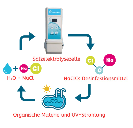 Pool Desinfektion ohne Chlorzugabe : Salzelektrolyse