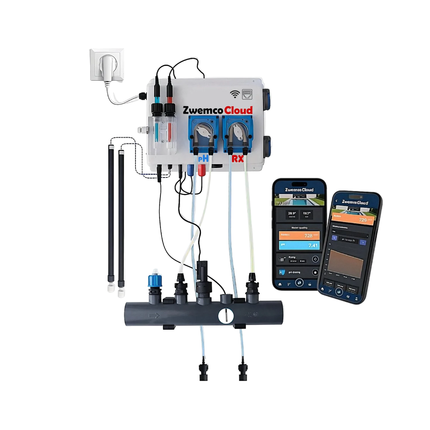 Pool Twin PRO ZwemcoCloud WiFi ist automatisches Wasserbehandlungsgerät für Dosierung flüssiges Chlor und pH-Neutralisator, höchste Qualität unglaublicher Preis.